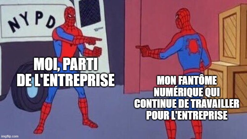 Bon… On va quand même parler un peu d’IA. Mais comme vous êtes seulement une poignée d’élites à lire cette newsletter jusqu’au bout, vous serez peu nombreux à découvrir la supercherie. Connaissez-vous le concept de « Fantôme Numérique » ? Ce sont tous les contenus que vous laissez quand vous quittez une entreprise : des présentations Powerpoint truculentes, une âpre négociation par email, un meme douteux ou une manière très spécifique de coder. Des productions qui témoignent de notre personnalité, de notre professionnalisme et de notre créativité. Fut un temps, ils devenaient des souvenirs. En 2024, ils deviennent de la matière à Machine Learning pour transformer votre « Fantôme Numérique » en un « Double Numérique » qui travaille à votre place.